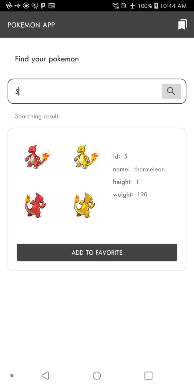 pokemon Pokemon application, find your pokemon and add in favorite Build apk available in "release" directory Screenshots: