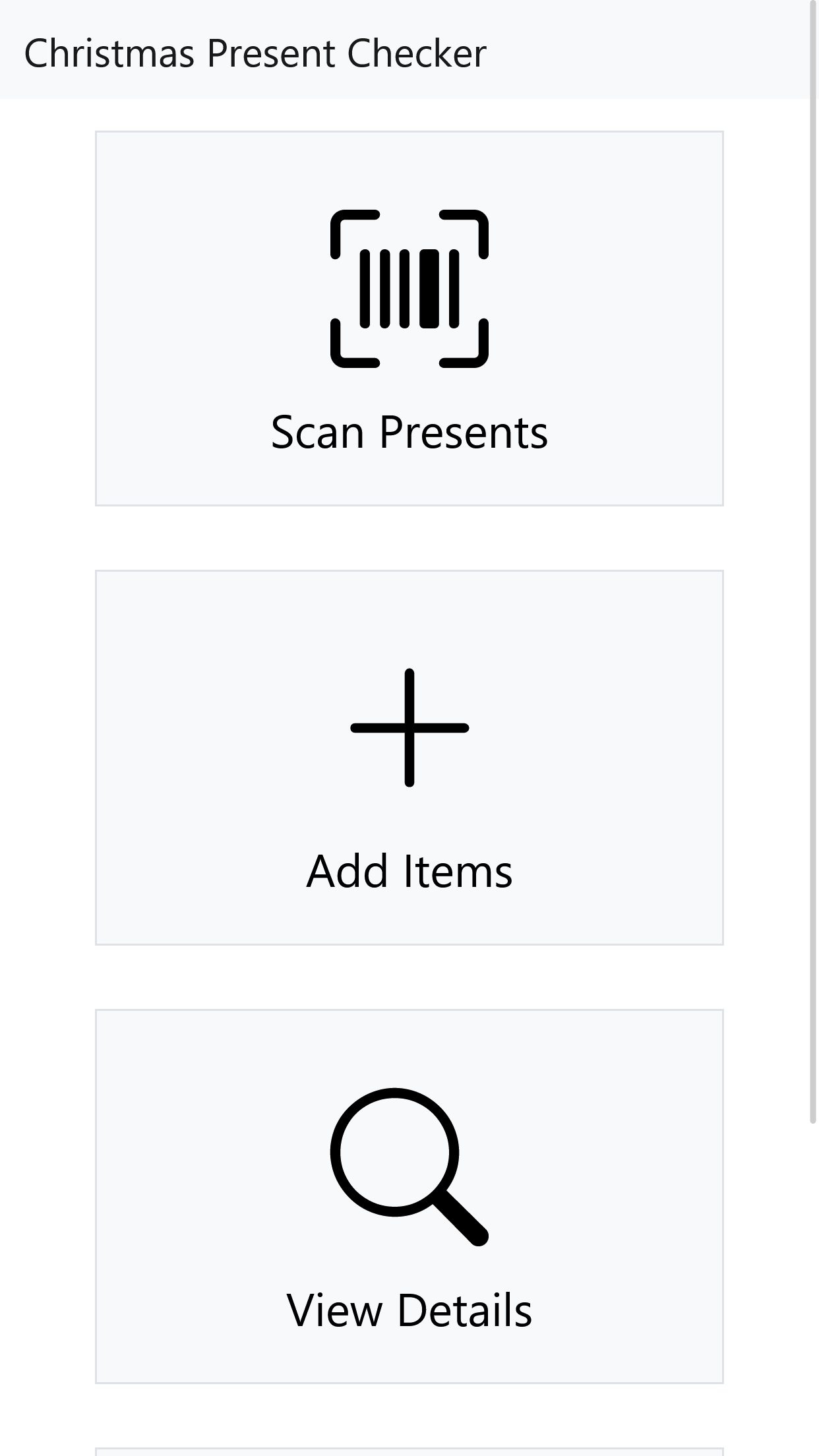 This project aims to be a fun way of managing Christmas presents. Who needs labels when you can slap barcodes on presents and use the Christmas Present Checker!