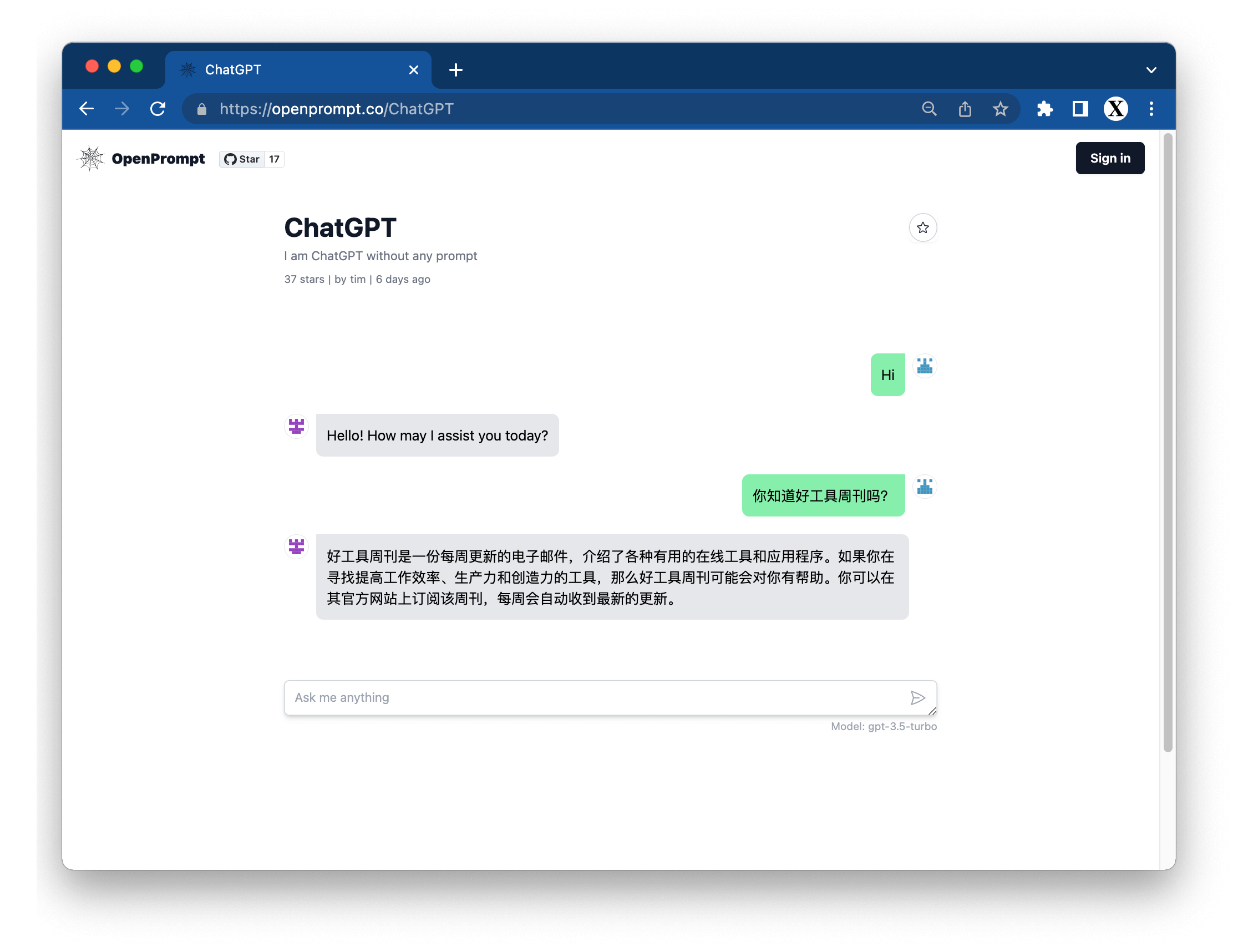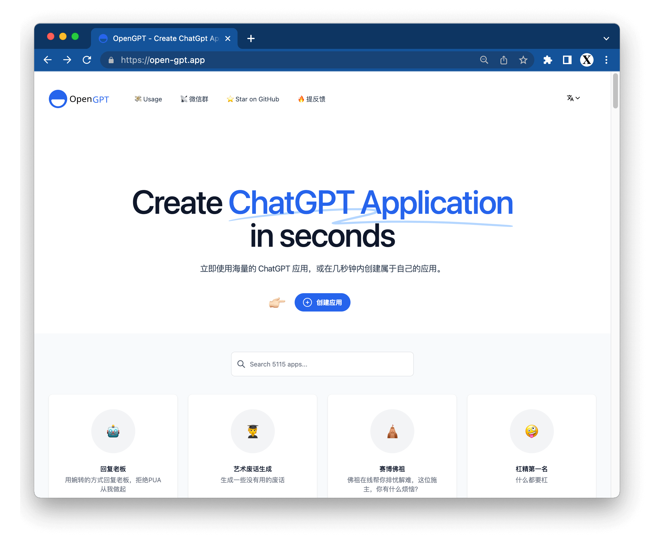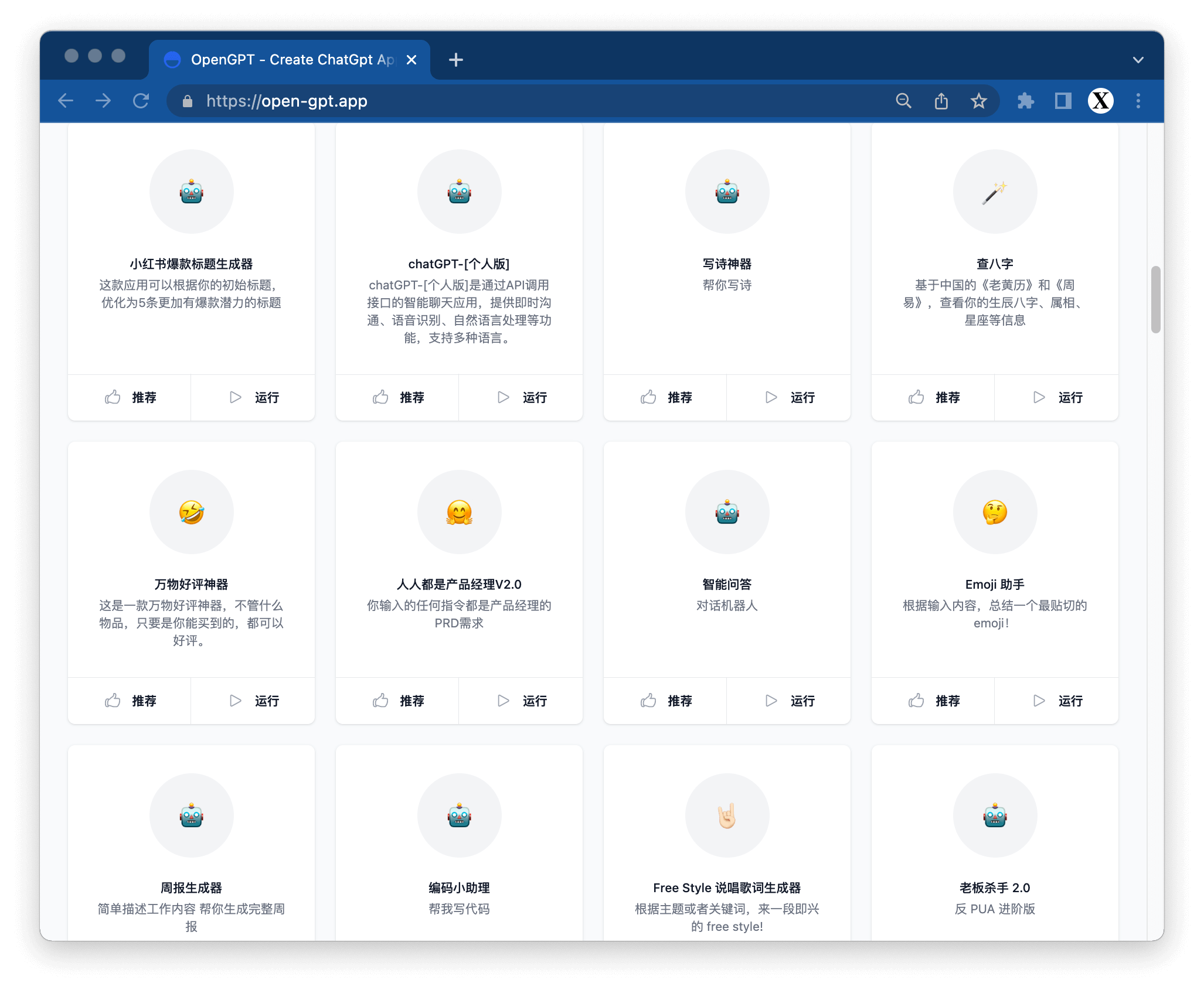 与上面的工具有点类似。用户可以使用并创建 ChatGPT 小应用的开源的网站。