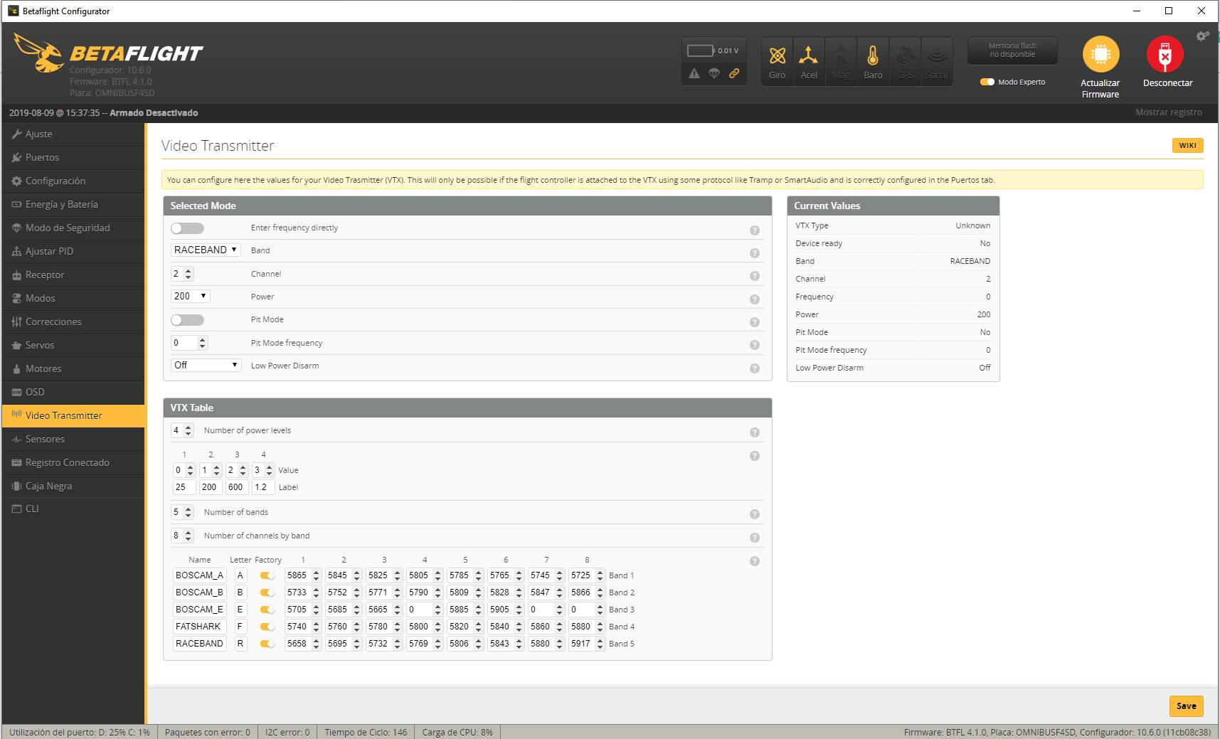 Yes, and the power level too, but this breaks a little the fields size aesthetic of all the tab and it will not serve as nothing, the table will end using the same space: the VTX Table has more width than the mode selection table, and we have the status table in the right. I can't move up the VTX Table because it will go over the status. So is better than the mode table has a similar height than the status table from a design point of view. |