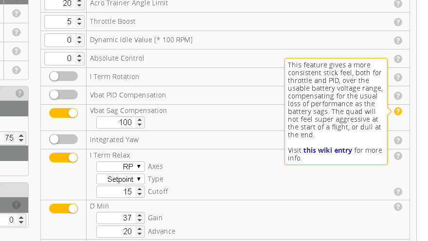 Added Vbat Sag Compensation to UI, when its enabled the sag value goes to default standard of 100 else it goes to 0(disabled).