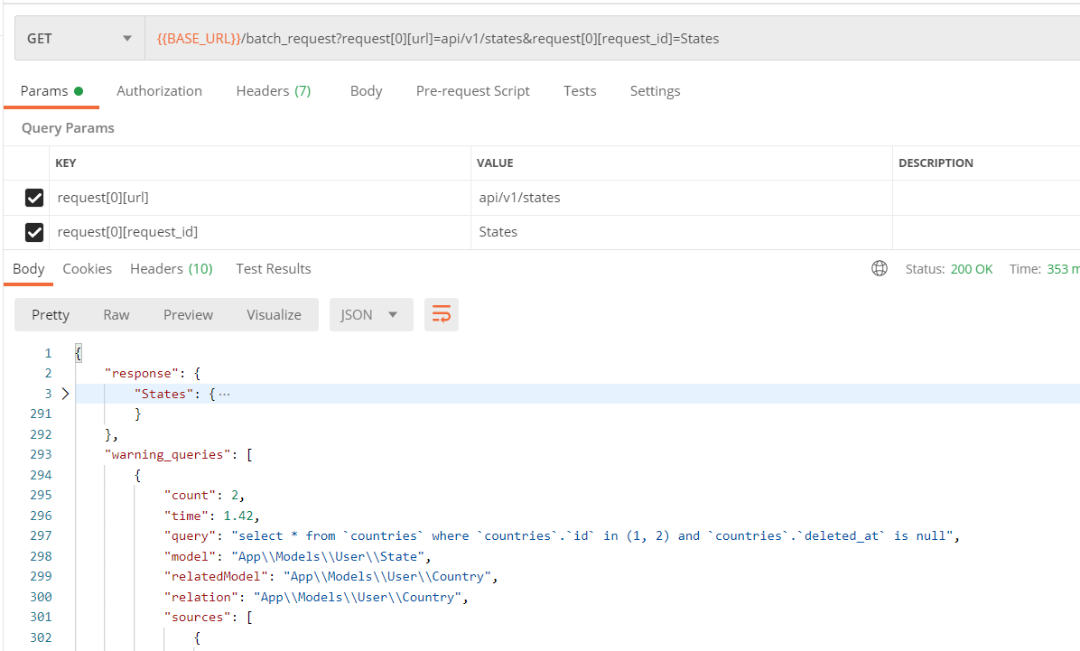 I have created a simple get all details API as a State model. It looks fine in individual API but when I call the same request in batch request it's given me N+1 warning errors: