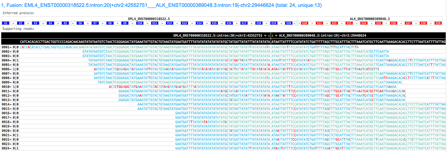 - the inferred fusion protein, with all exons and the transcription direction.