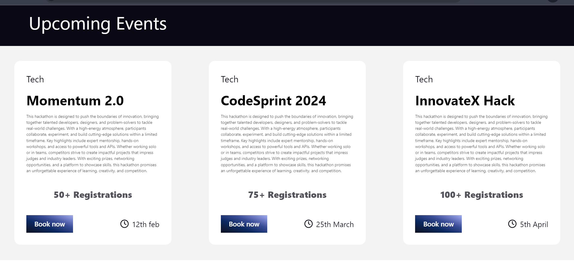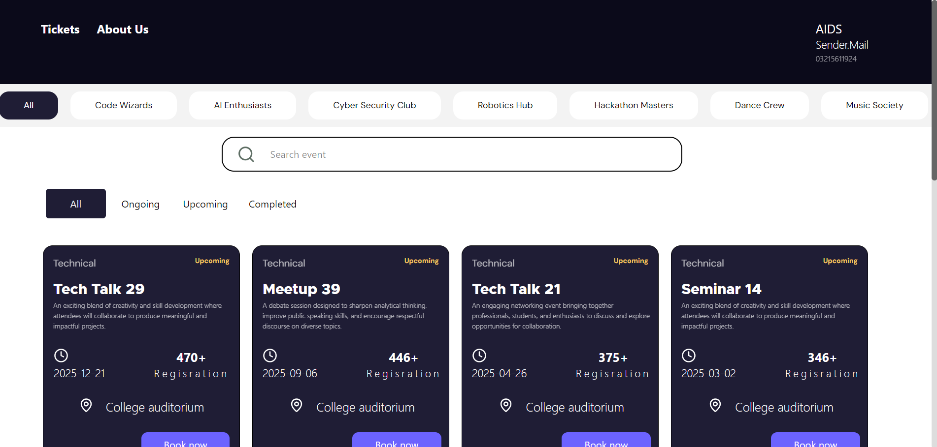 Easy Event Discovery – No more searching through WhatsApp groups or posters! Students can find all college events in one place.