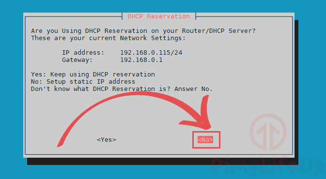 - You will now be asked if you are using a DHCP reservation on your router.