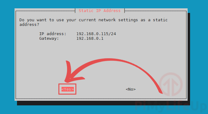 - Here, select to set the current IP address and gateway as static.