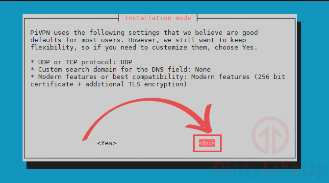 - You can now decide whether you want to customize the installation of OpenVPN on your Raspberry Pi.