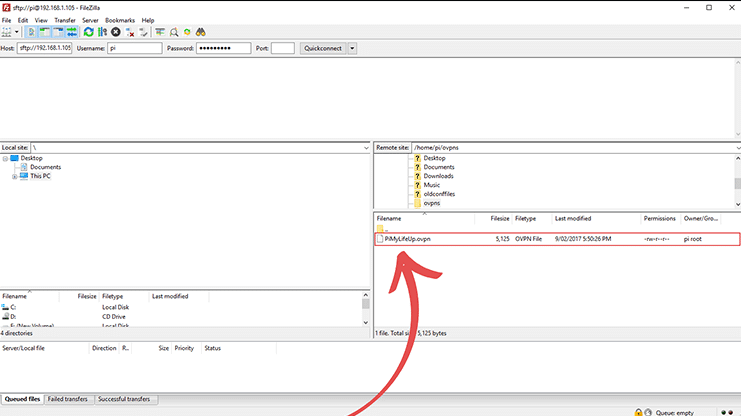 /home/pi/ovpns is the folder we will have to gain access to in the next few steps so we can copy the generated file to our devices.