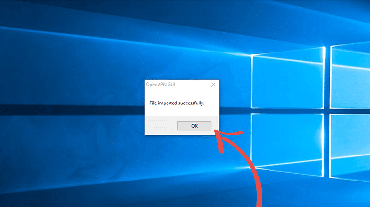 - You should now be presented with a dialog telling you the file has been successfully imported into OpenVPN.