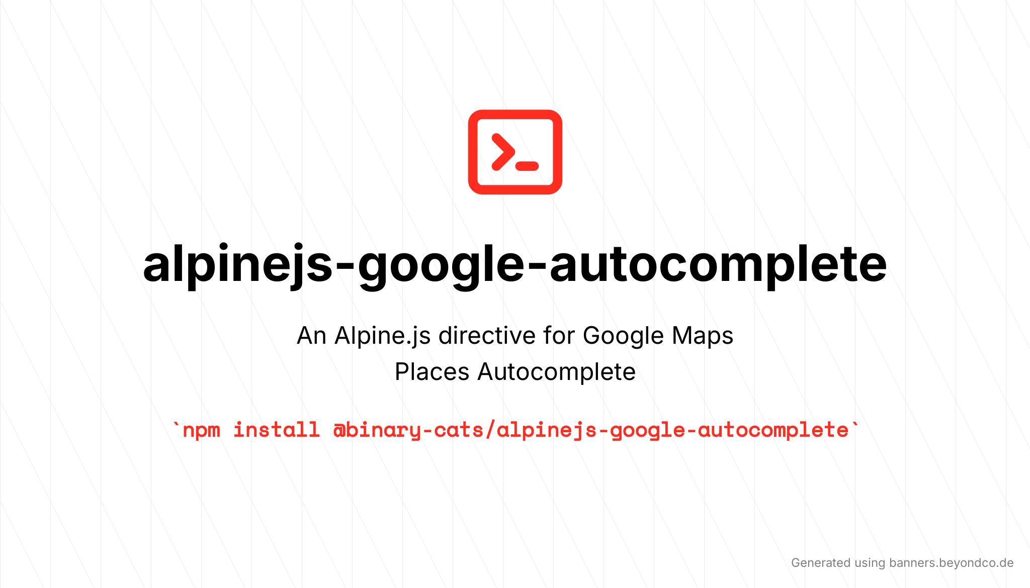 npm install @binary-cats/alpinejs-google-autocompleteInclude the Maps JS loader and fire maps:init once it’s ready: