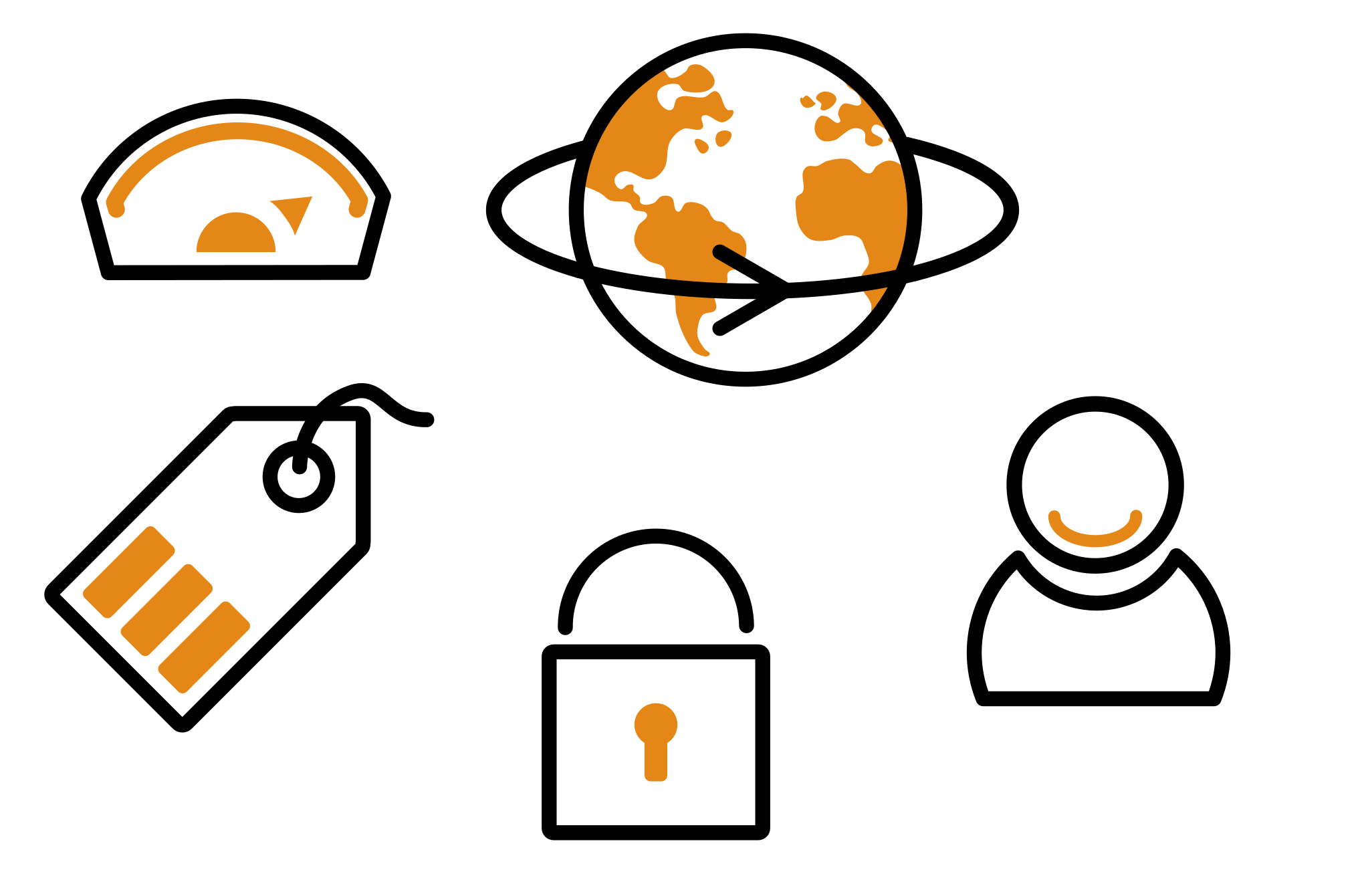 I've drafted icons in the following style, for example, in addition to lifting up the Bitcoin.org orange color is used to make them look more related: