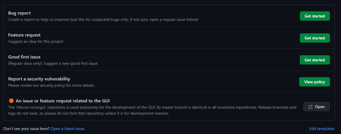 01:53 < wumpus> i think we should add an entry to the "https://github.com/bitcoin/bitcoin/issues/new/choose" list for GUI issues, redirecting people to the appropriate repository