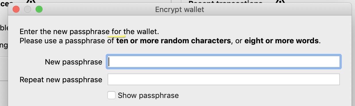 …etdialog/askpassphrasedialog Summary: UI improvements: - update remaining GUI wallet labels and tooltips from passwords to passphrases - improve grammar of labels in askpassphrase dialog and WalletController::closeWallet Backport of Core [[bitcoin/bitcoin#16822 | PR16822]] - part 2 of 3 Commit bitcoin/bitcoin@539d940 Depends on D8006 Test Plan: `ninja` Run `src/qt/bitcoin-qt`, create a new wallet with encryption and check the text in the dialogs. Reviewers: O1 Bitcoin ABC, #bitcoin_abc, jasonbcox Reviewed By: O1 Bitcoin ABC, #bitcoin_abc, jasonbcox Differential Revision: https://reviews.bitcoinabc.org/D8007