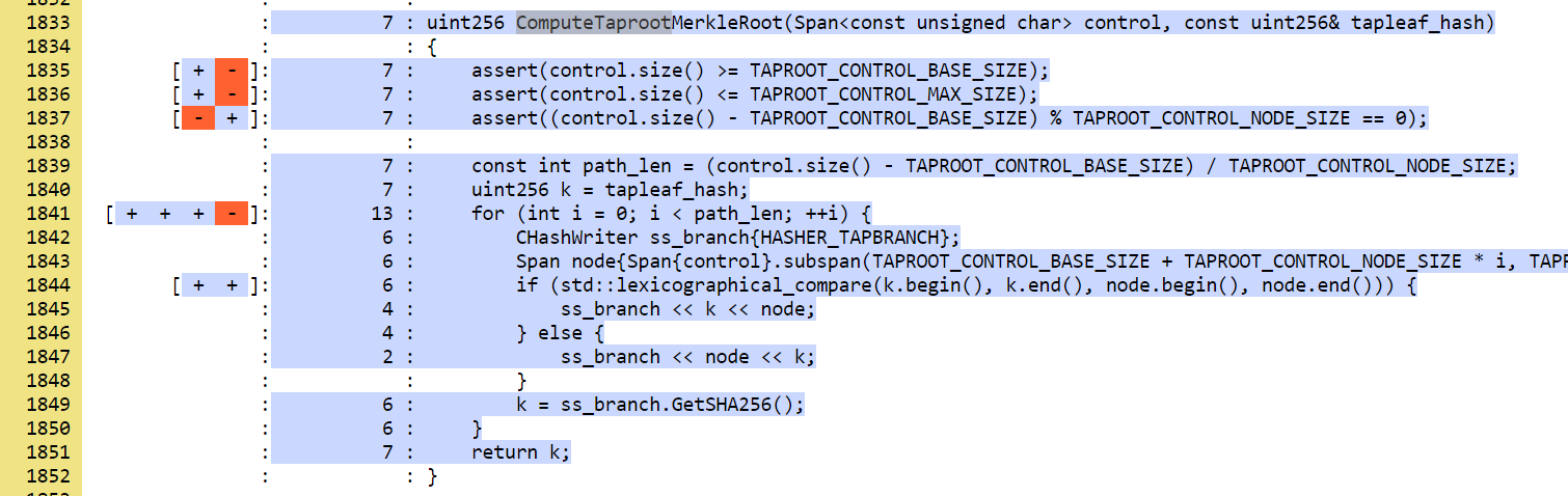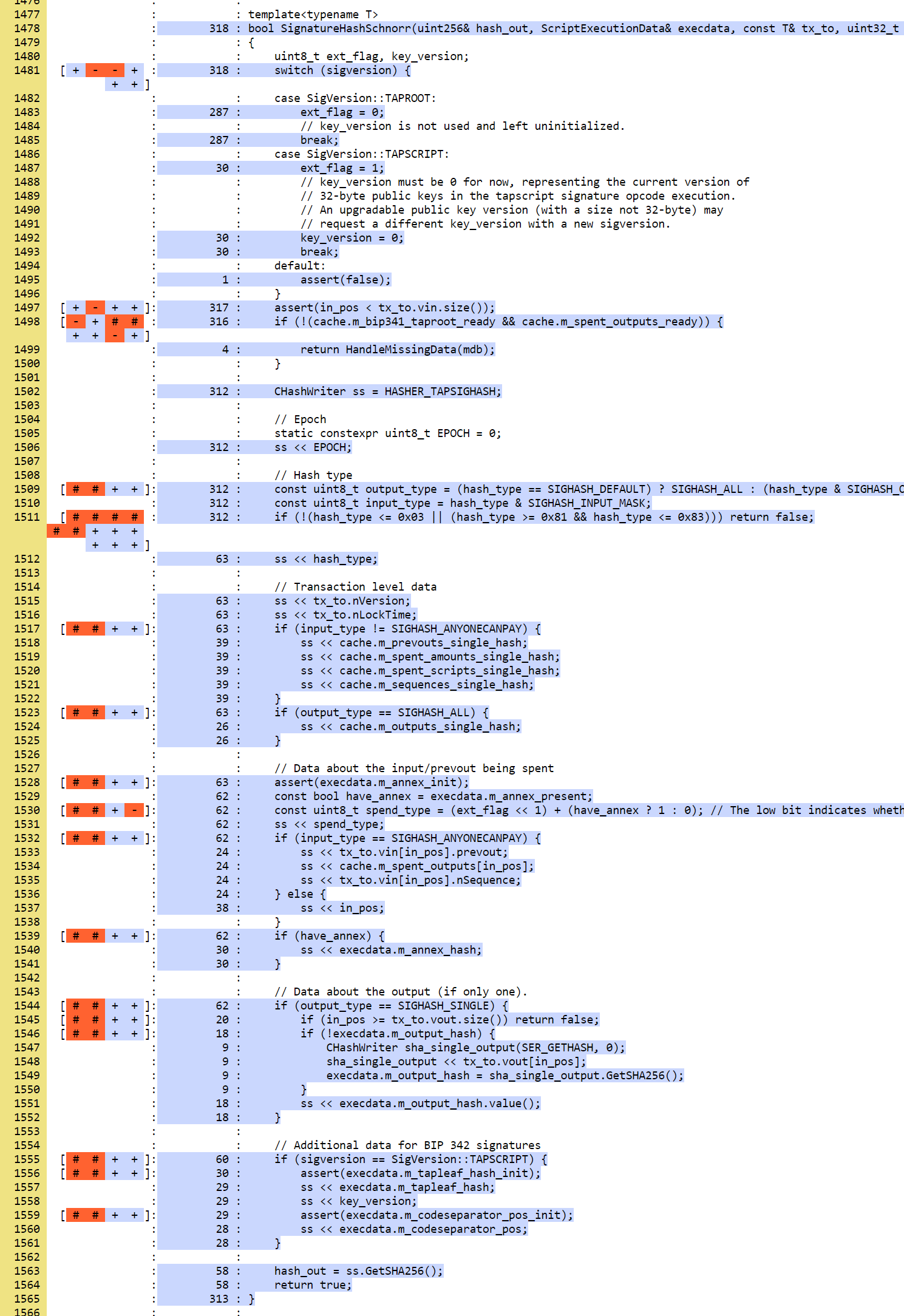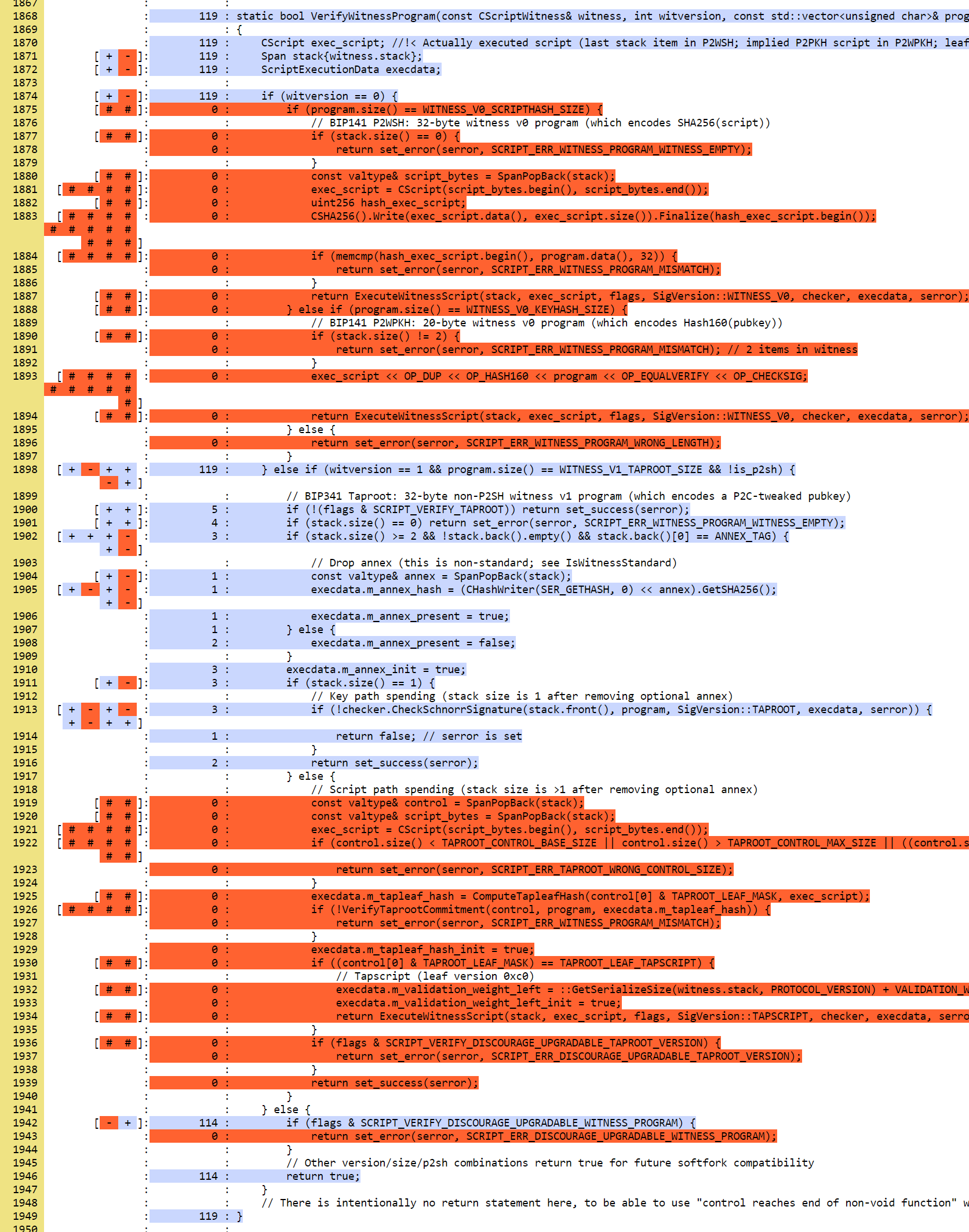 (and no other) is triggered.Coverage results 2022-06-05 showing Taproot coverage (Tapscript tests not yet complete) when only running