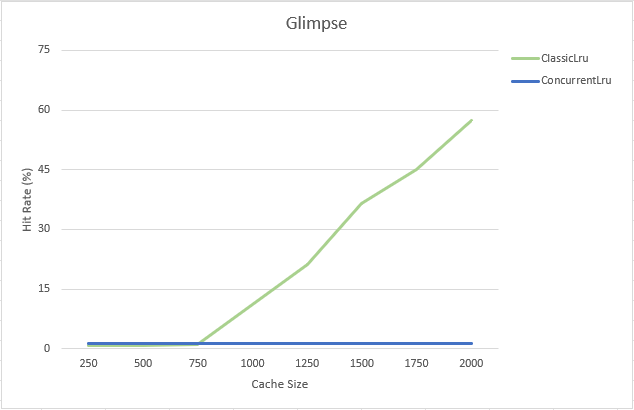For the Glimpse scenario ConcurrentLru performs significantly worse than LRU: