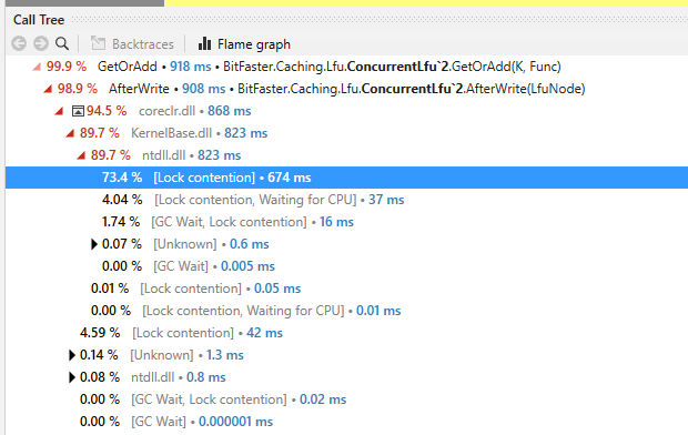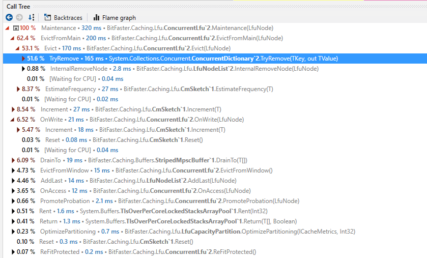 In the Read+Write scenario, the bottleneck is lock contention while attempting to enter the maintenance lock.