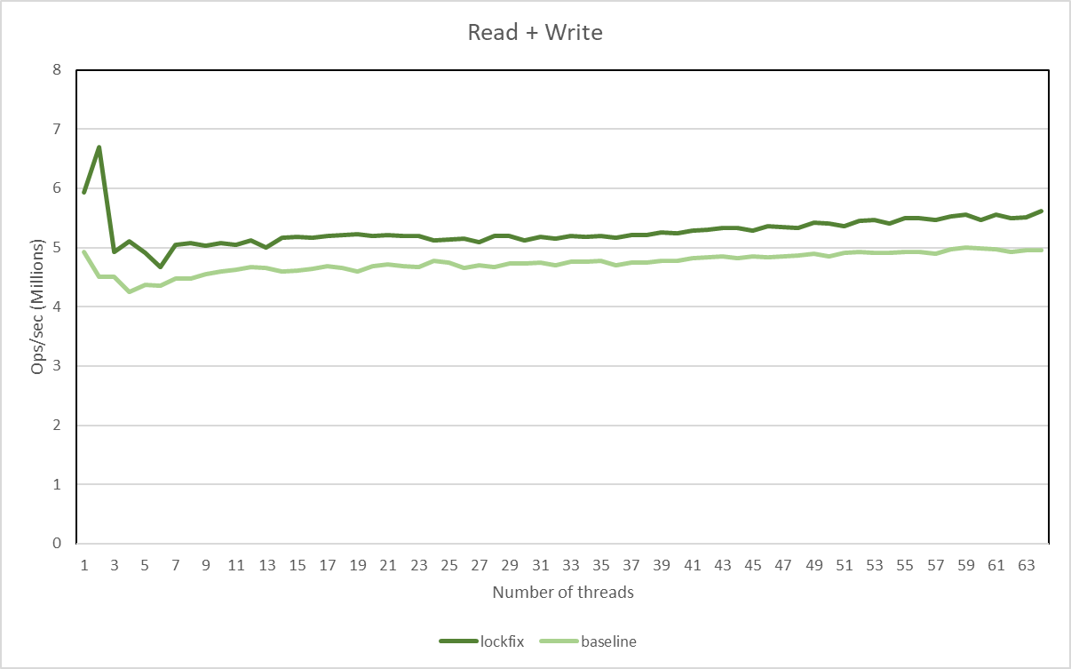 This is an approx 10% throughput gain for the Read+Write scenario.