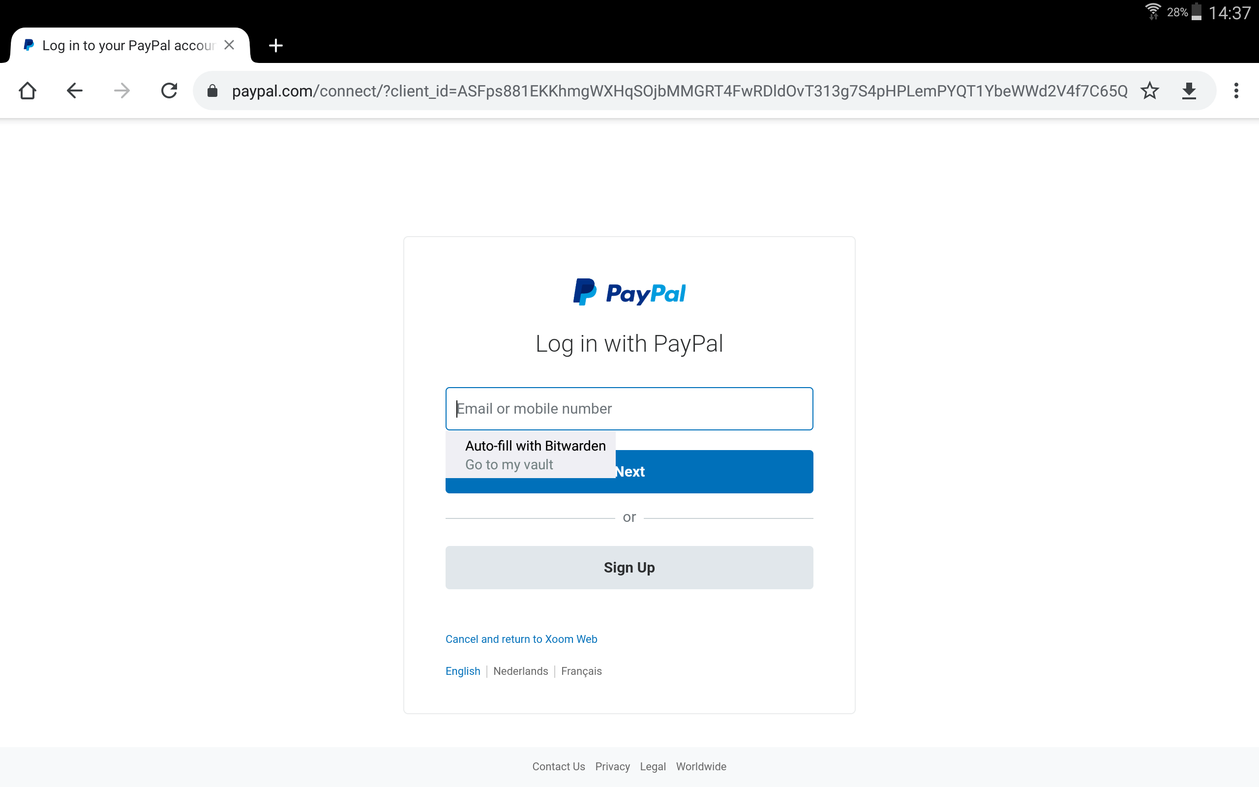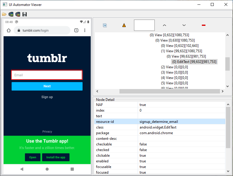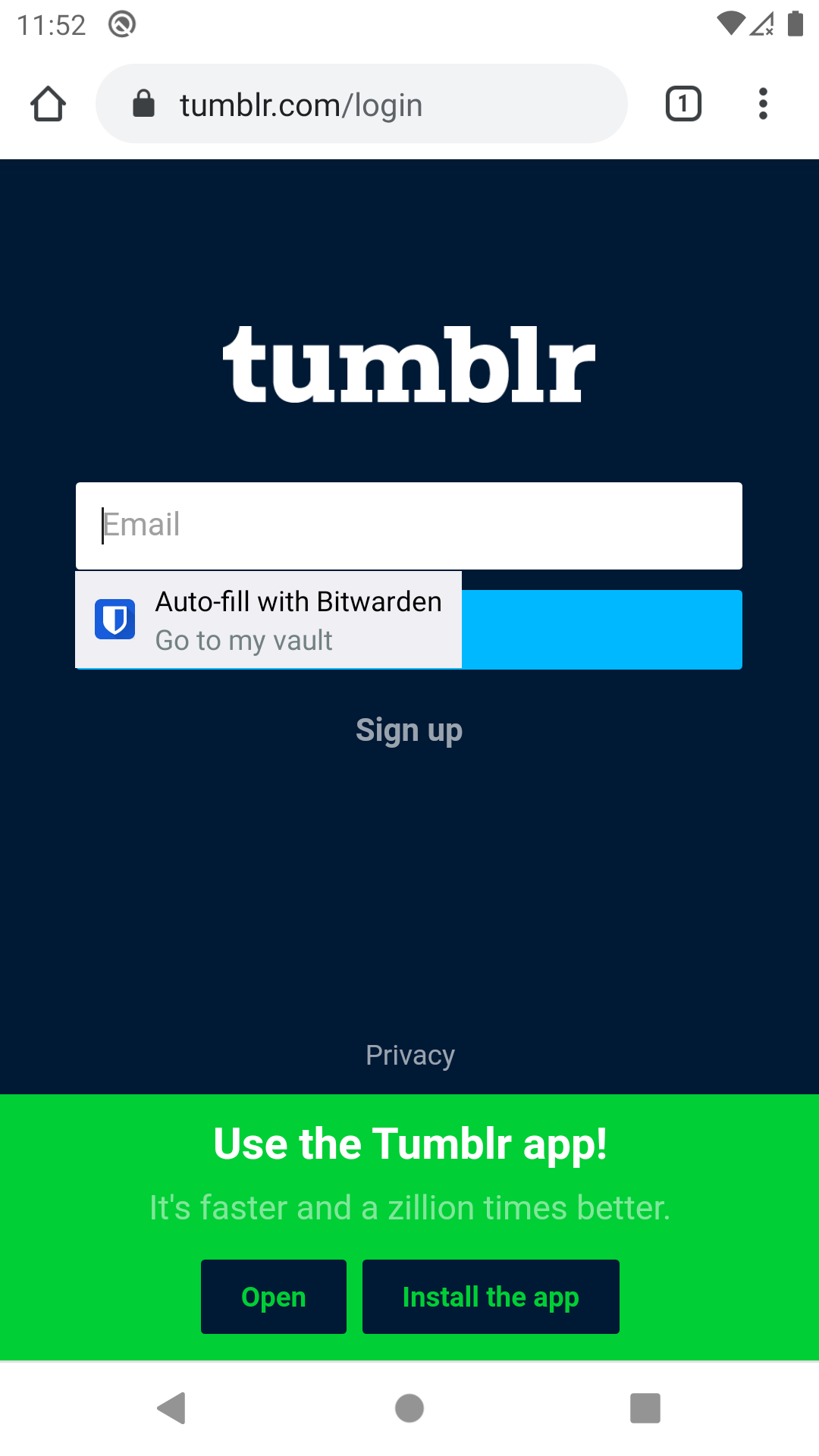 Proof of proper functioningTechnical screenshots💡 Thanks to the way Tumblr is coded, Bitwarden will even be able to automatically fill in the (hidden) password field in the process (in one go), password field that will be displayed in the next step! The login action is therefore even faster on this website! |