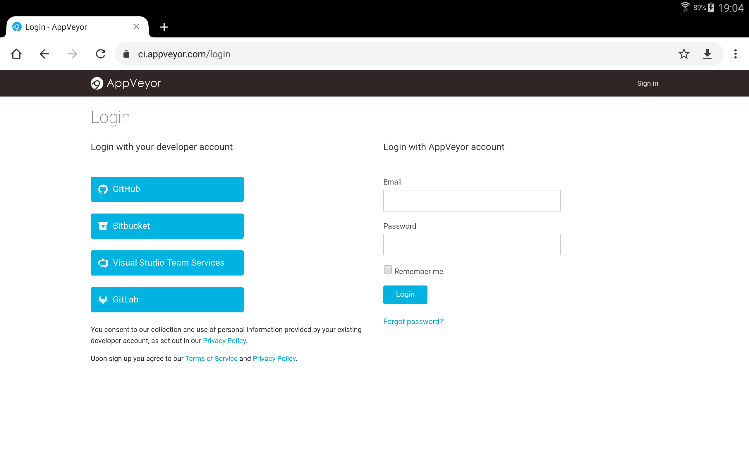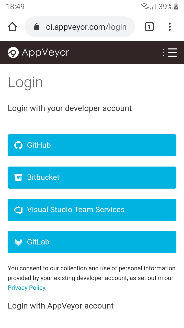 ➡️ Example of login using OAuth, in this case on AppVeyor.