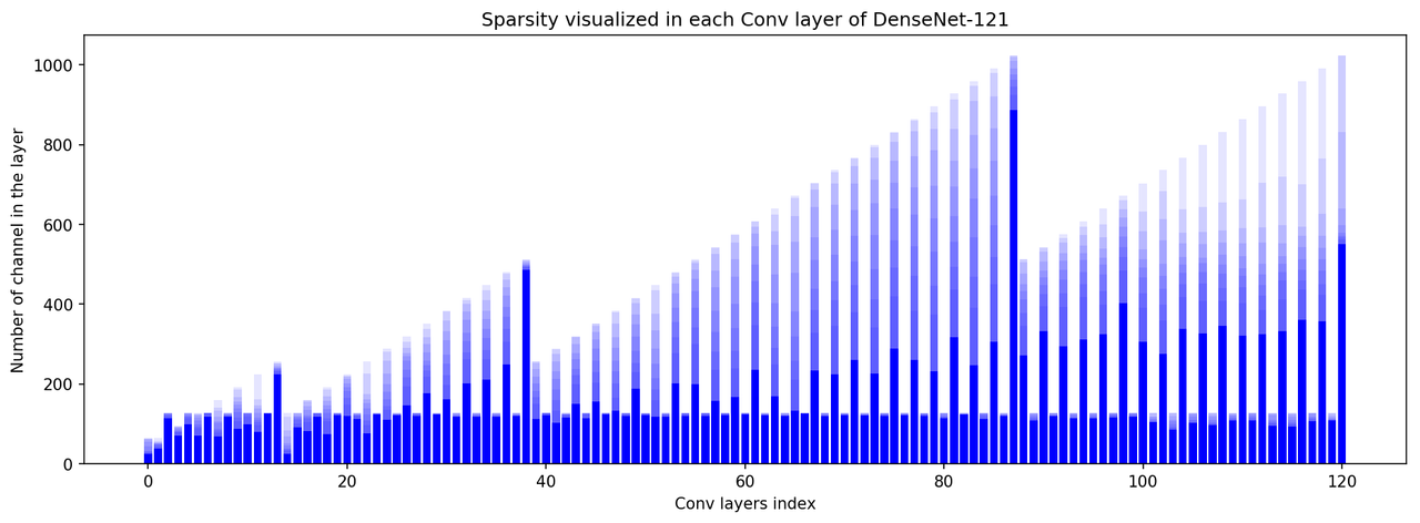 - Visualizing sparsity in each convolutional layer (DenseNet-121)