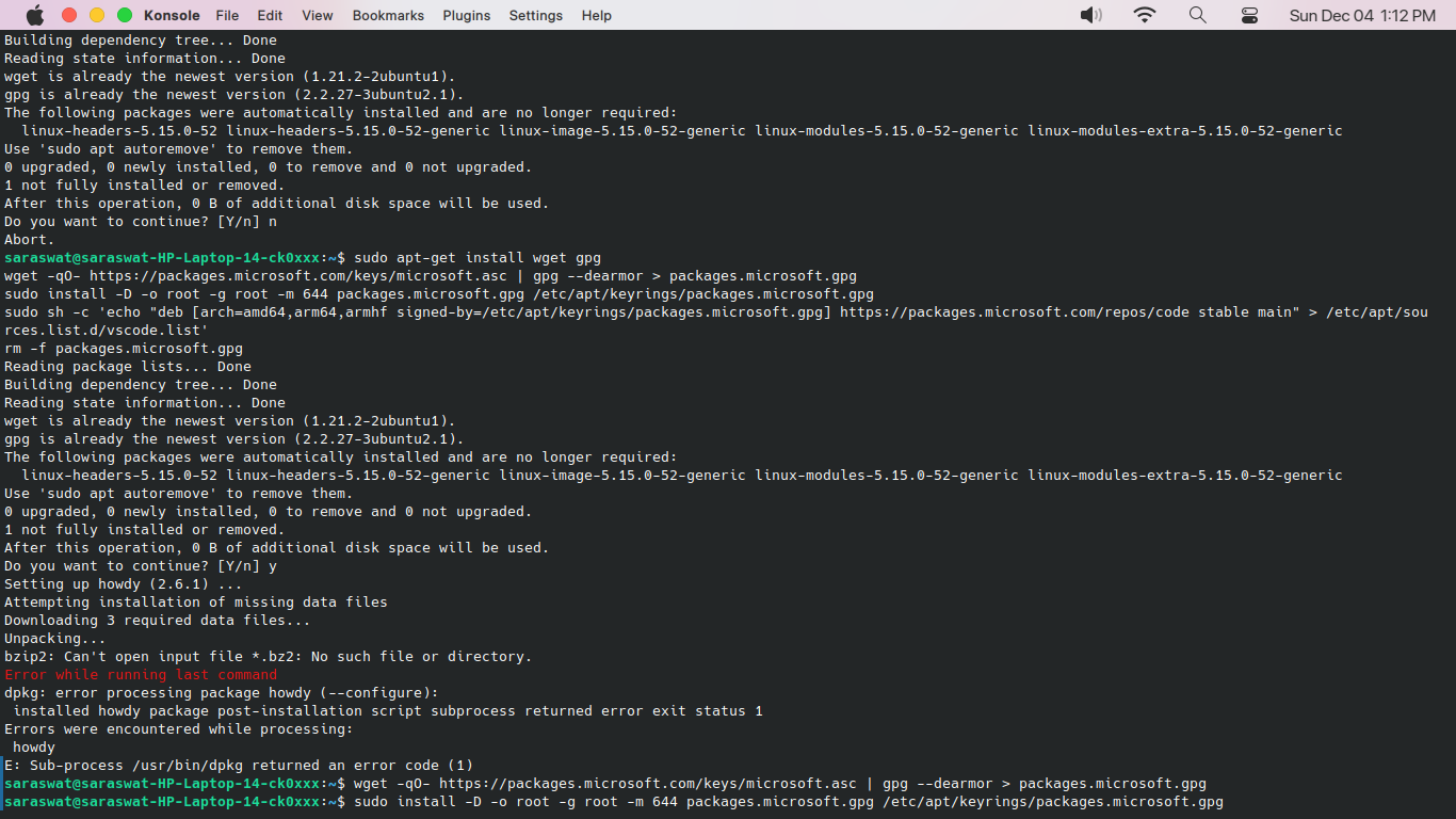i tried to install howdy but it says that 3 missing files are needed to install but at the end i just get a eror because of this i am unable to install anything pls help