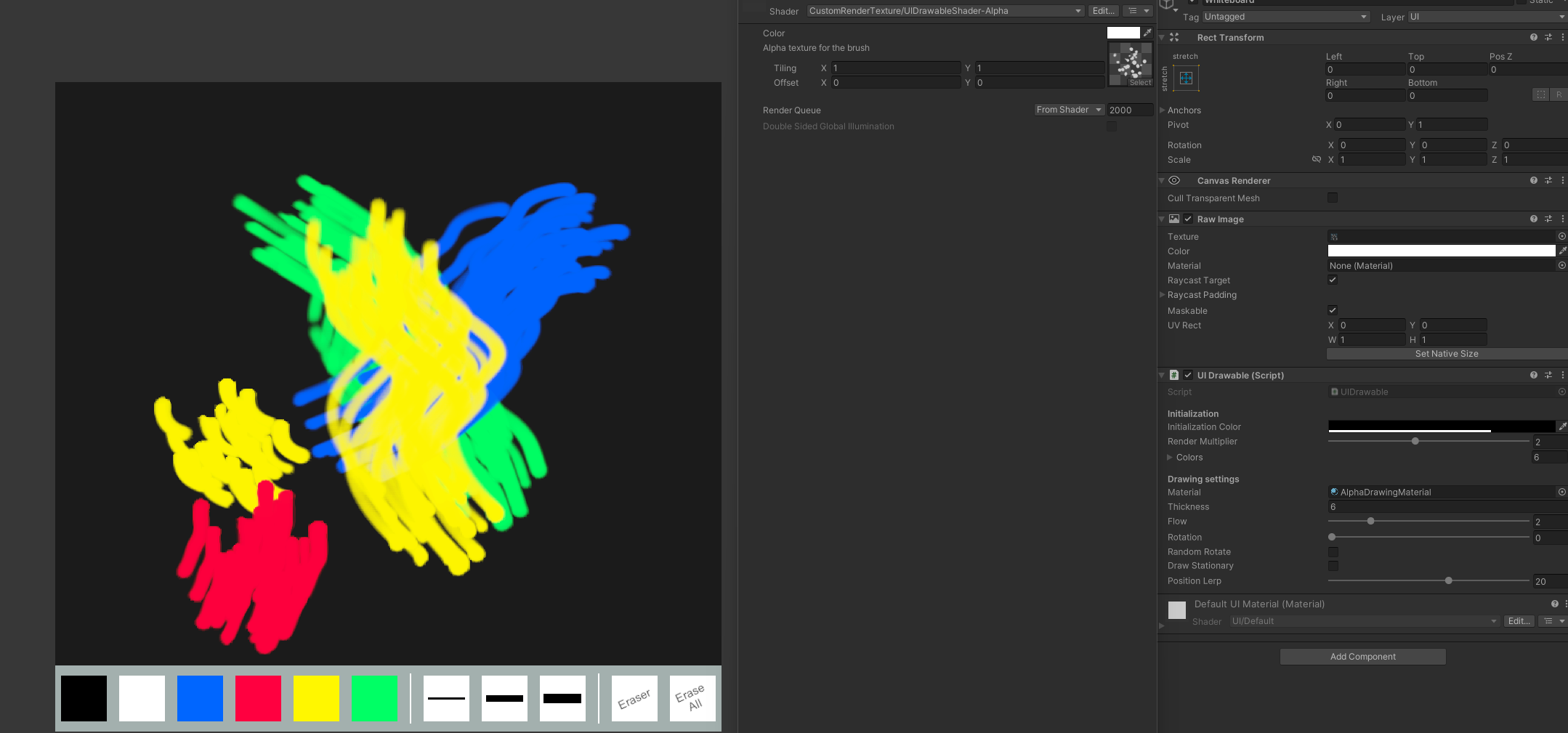A simple and performant drawing system for UGUI-space that makes use of rendertextures and shaders.