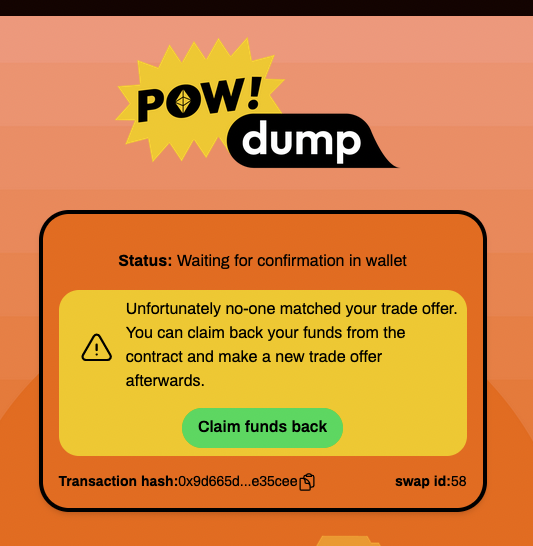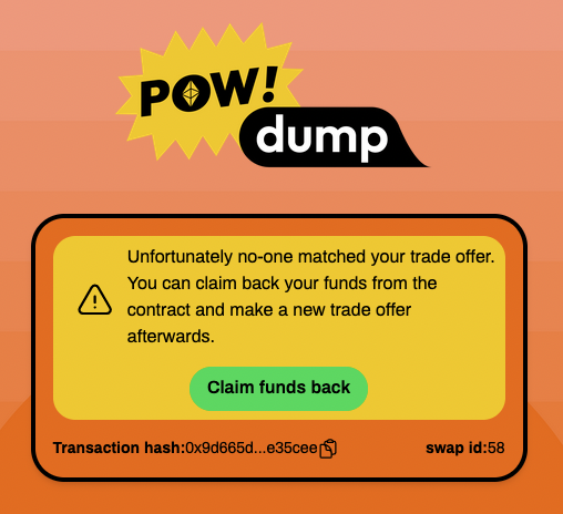The flow also changed a little - now we ask the user first to switch to a different chain and then he sees the target chain swap that we found. We check the times on his swap and on the target swap. If the target swap time left is less than 20 sec we prevent the user from revealing the secrets as there is not enough time for his tx to go through. (unless he sets a mega high tx gas, but he won’t have the time for this in the metamask UI…)