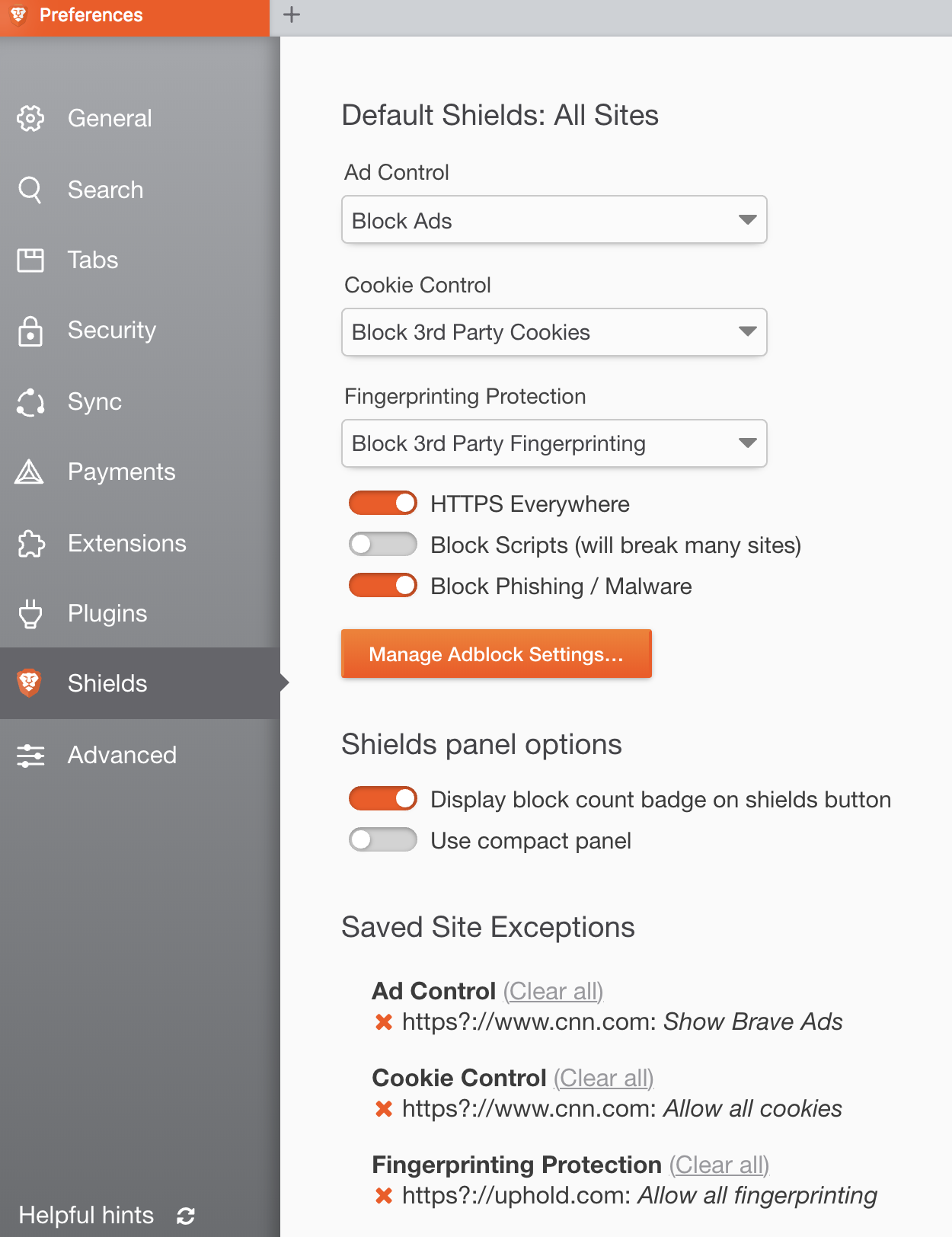 Muon would expose this via about:preferences#shields which looked like this: