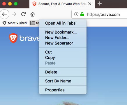 However, when right clicking on a folder in the bookmarks toolbar, you can't sort items in the folder: