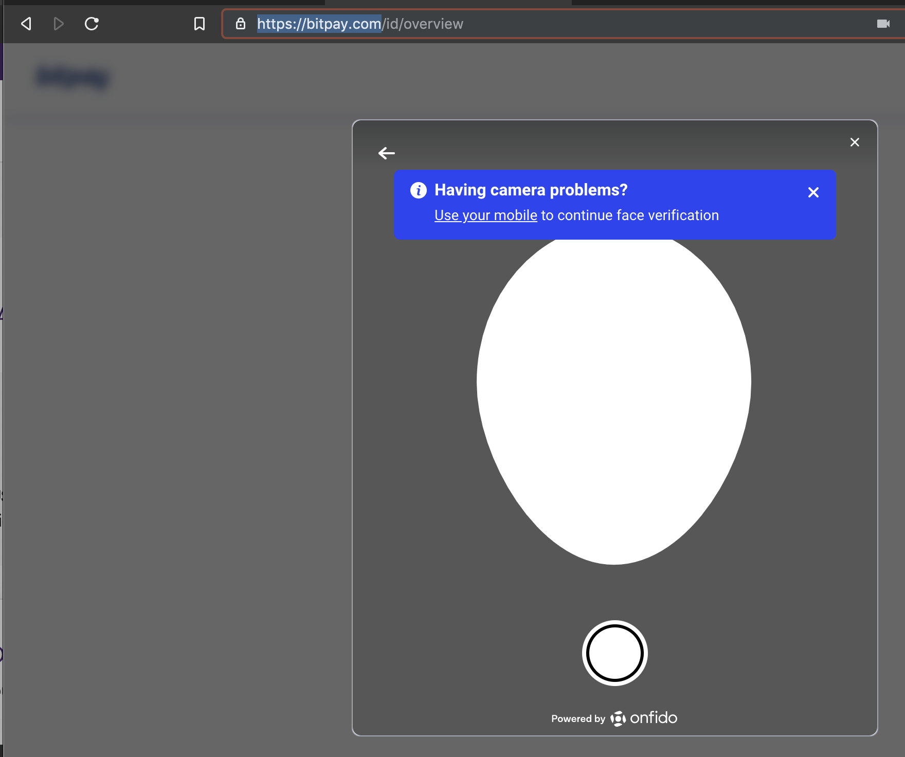 When requesting higher limits from BitPay, it asks for a selfie and requests camera access.