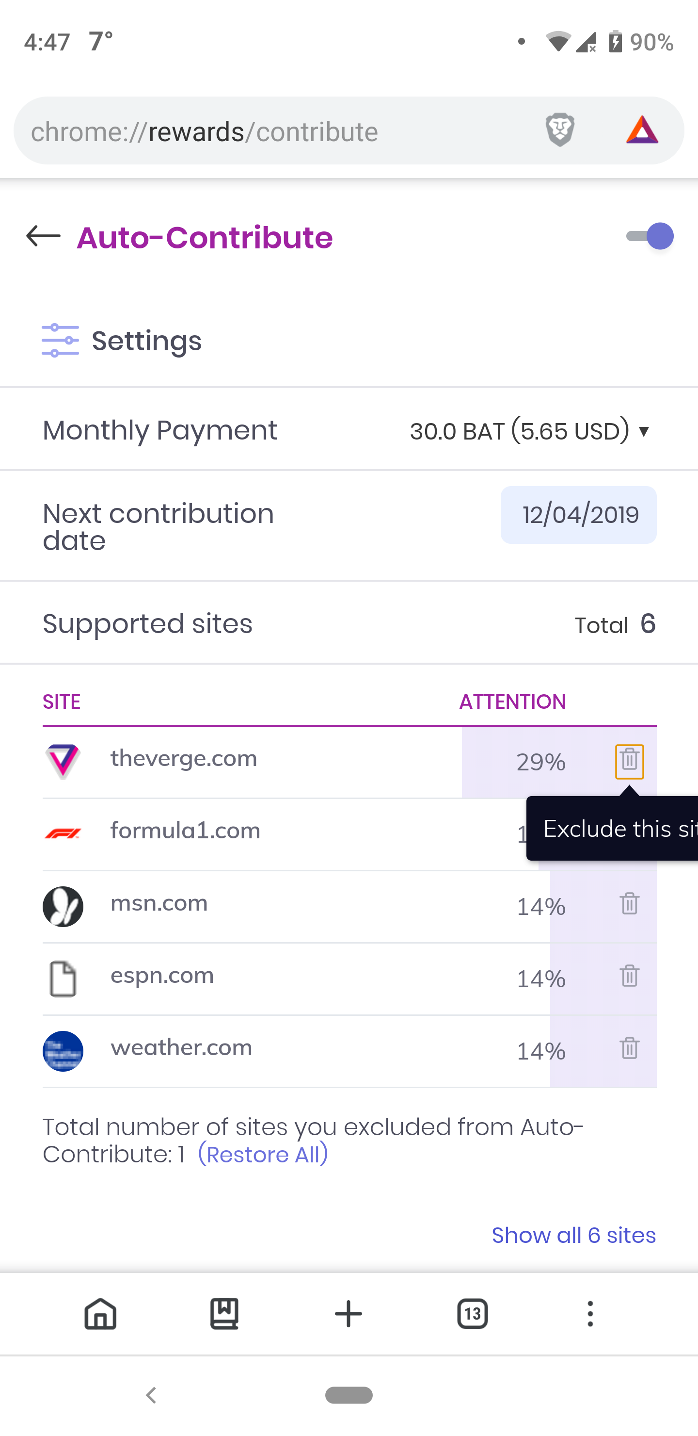 Exclude this site tool tip persist when a site is deleted and not fully visible
