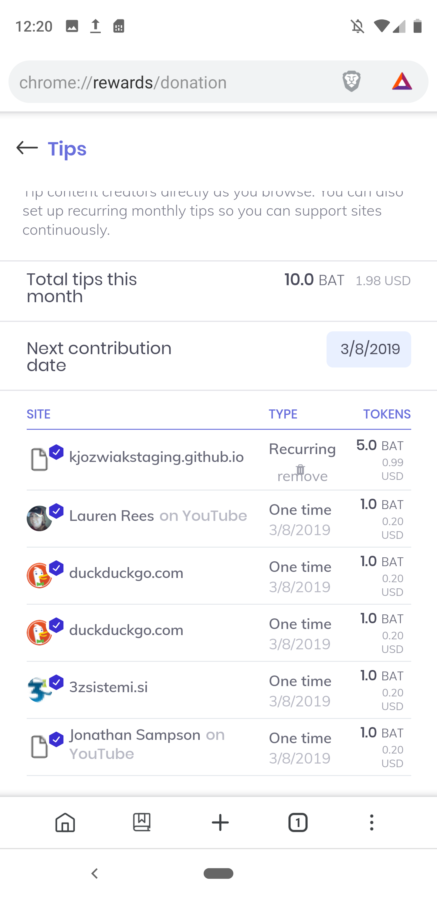 On b-c Auto Contribute and Tips tables behave in the same way, although it is different from Android.