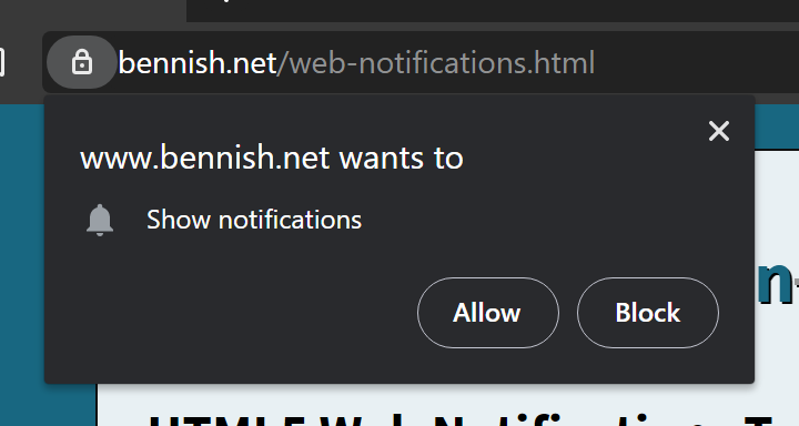 Ad notification is not shown on Windows until notifications are authorized, i.e. visiting http://bennish.net/web-notifications.html and clicking "Allow", i.e.