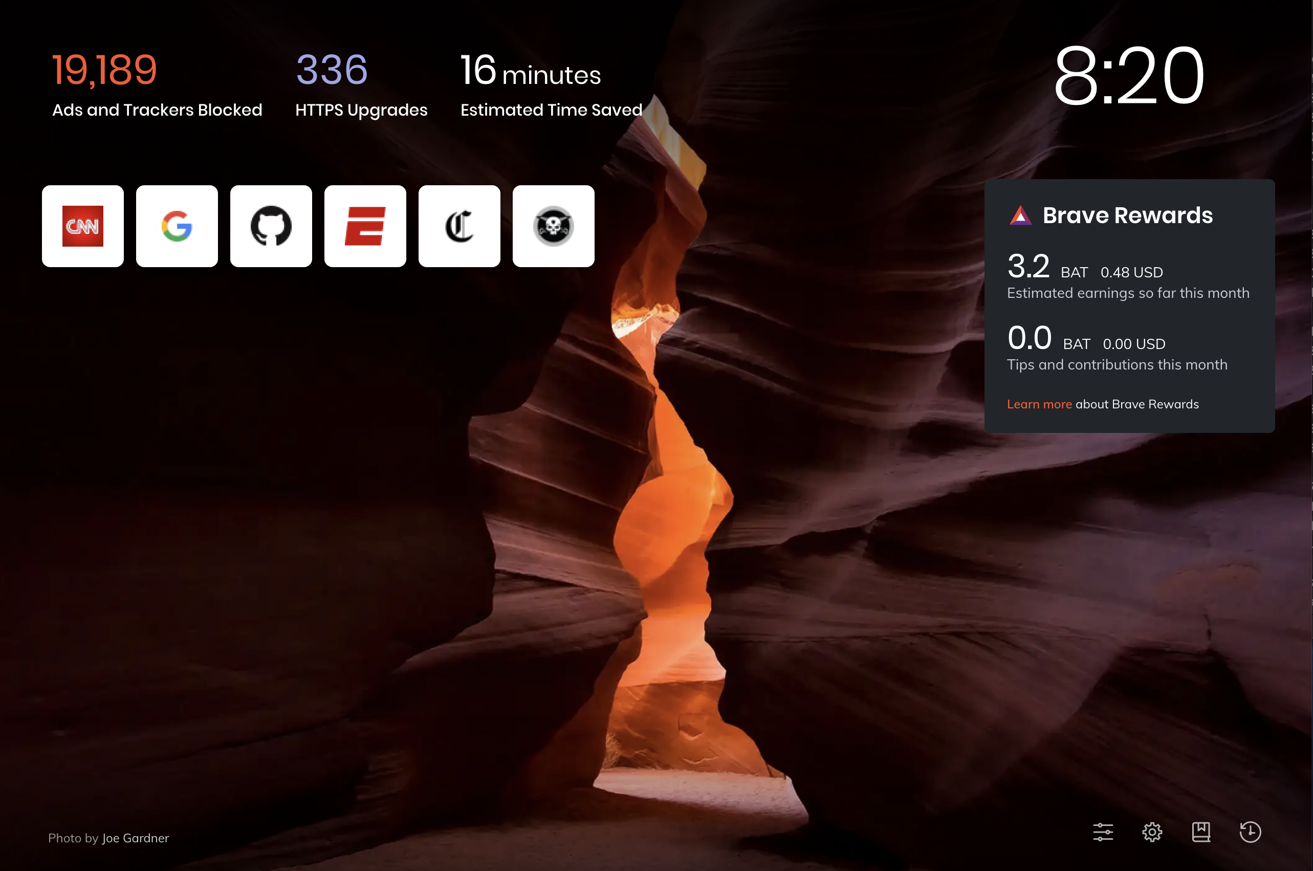 Hiding the Brave Rewards widget shifts the clock widget right. Showing the Brave Rewards widget centers the clock to the Brave Rewards widget.