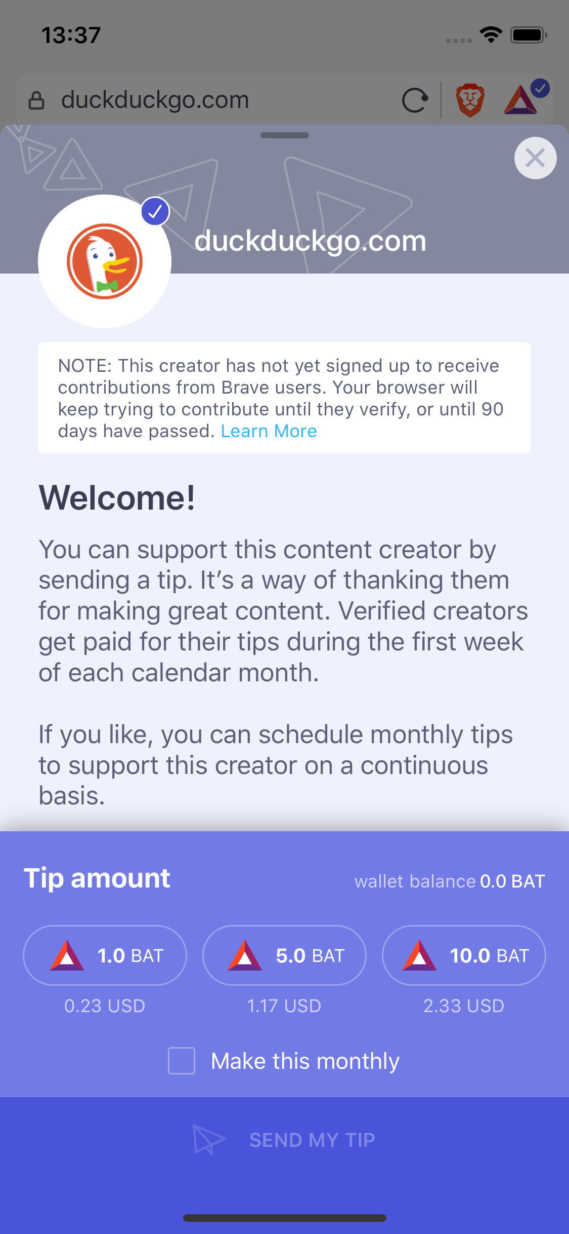 Sign upFix #1806: Show verified publisher symbol on tipping page #1811