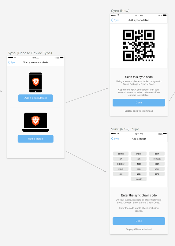 The new flow on all platforms adds a new screen that offers the user a choice of adding a mobile device or a laptop. This step helps guide the user to use the most likely sync code input method for that device.