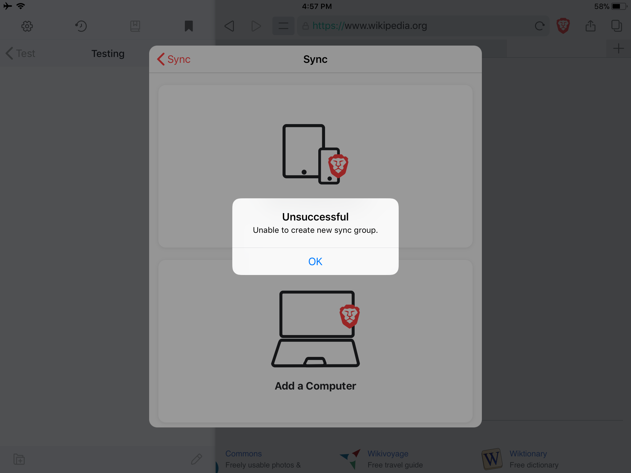 Add a Mobile DeviceandAdd a computersimultaneouslyUnable to create a sync groupActual result: