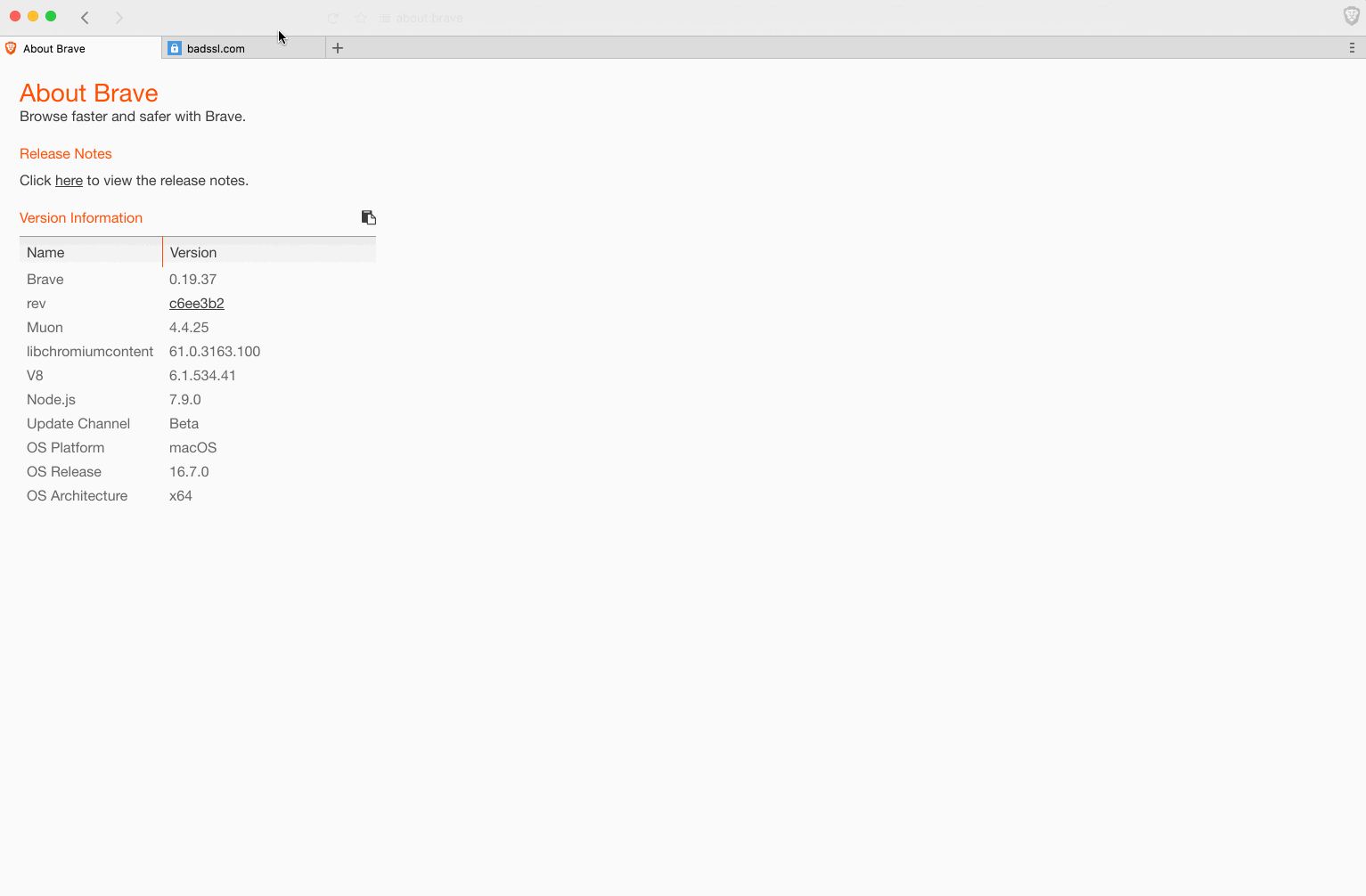 about:brave info: