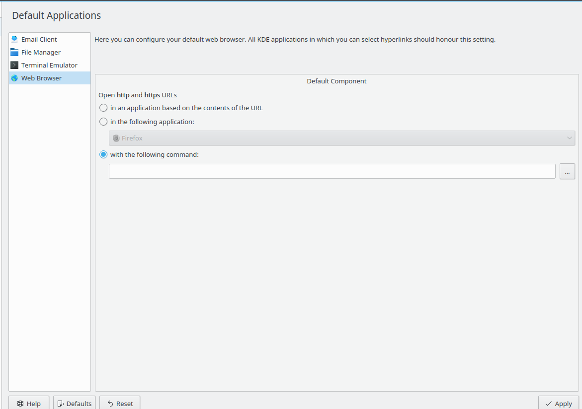 I think this might be useful, when I went to control panel and checked default browser there, there was no default: So I clicked on a link in thunderbird, the link was opened in firefox. I cltr+click on a link from a terminal and it was also opened in firefox. |
