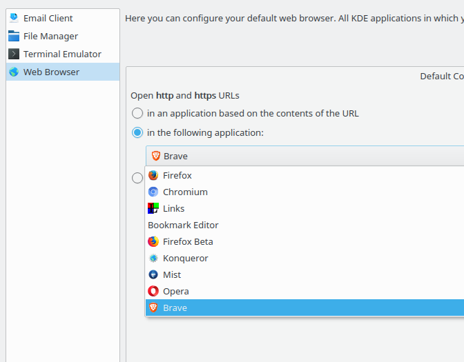 Clicking on set as default browser doesn't work. Brave is not set as default browser and the text above the button doesn't change from