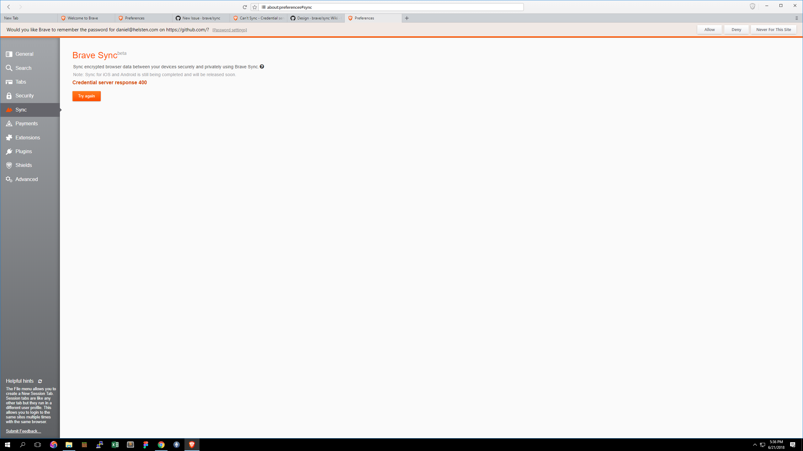 I selected that I have an existing sync computer and attempted to add Brave to sync. I input my secret code words.
