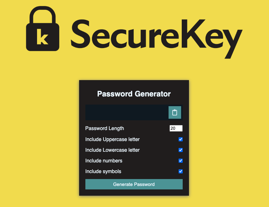 A simple password generator built using JavaScript. This application generates strong passwords based on user-specified criteria. It can be run in a web browser.