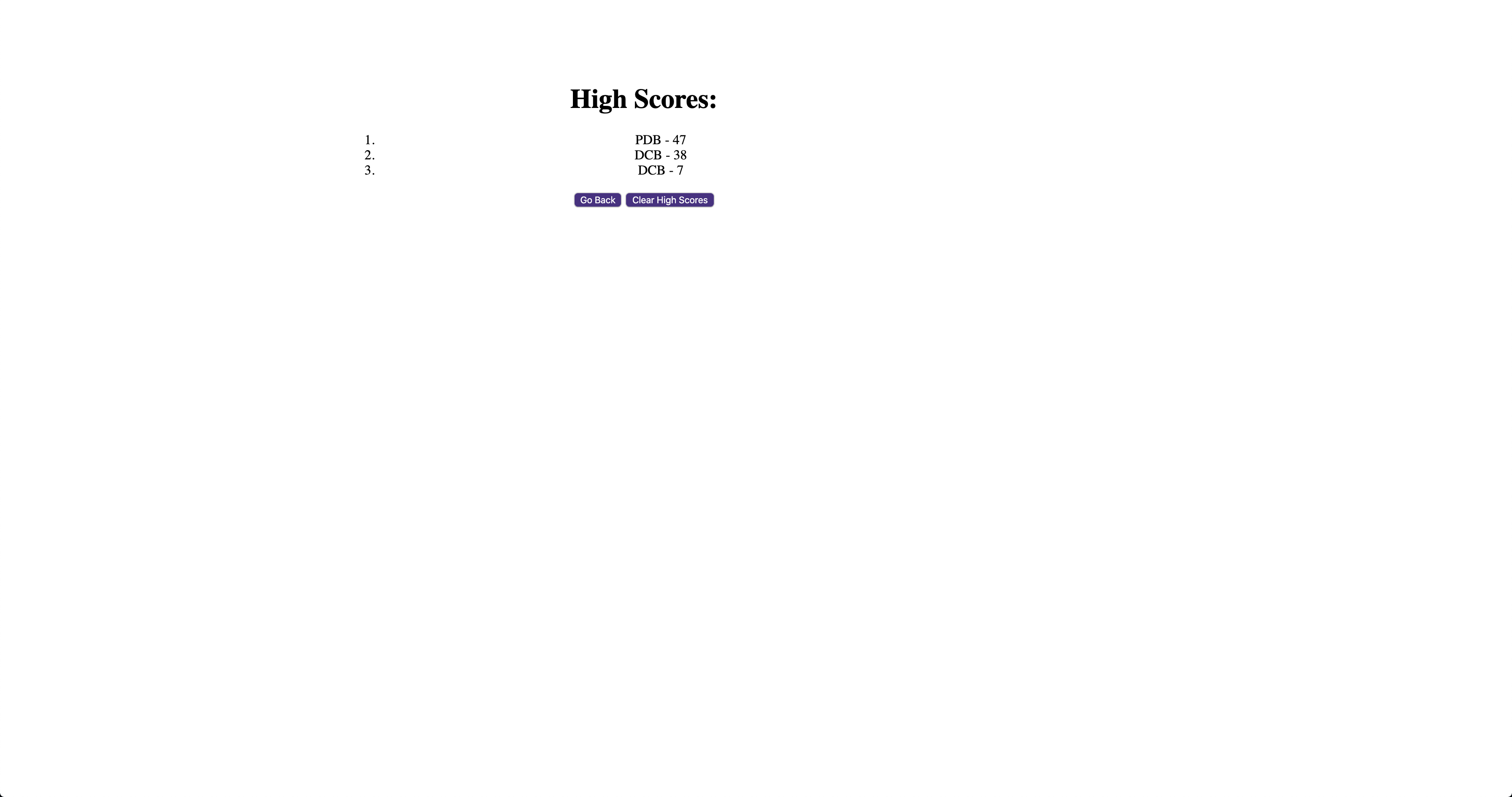 - Record the user's score; which is the amount of time the user had left on the timer when the quiz ends, and save the user's intitials to local storage.