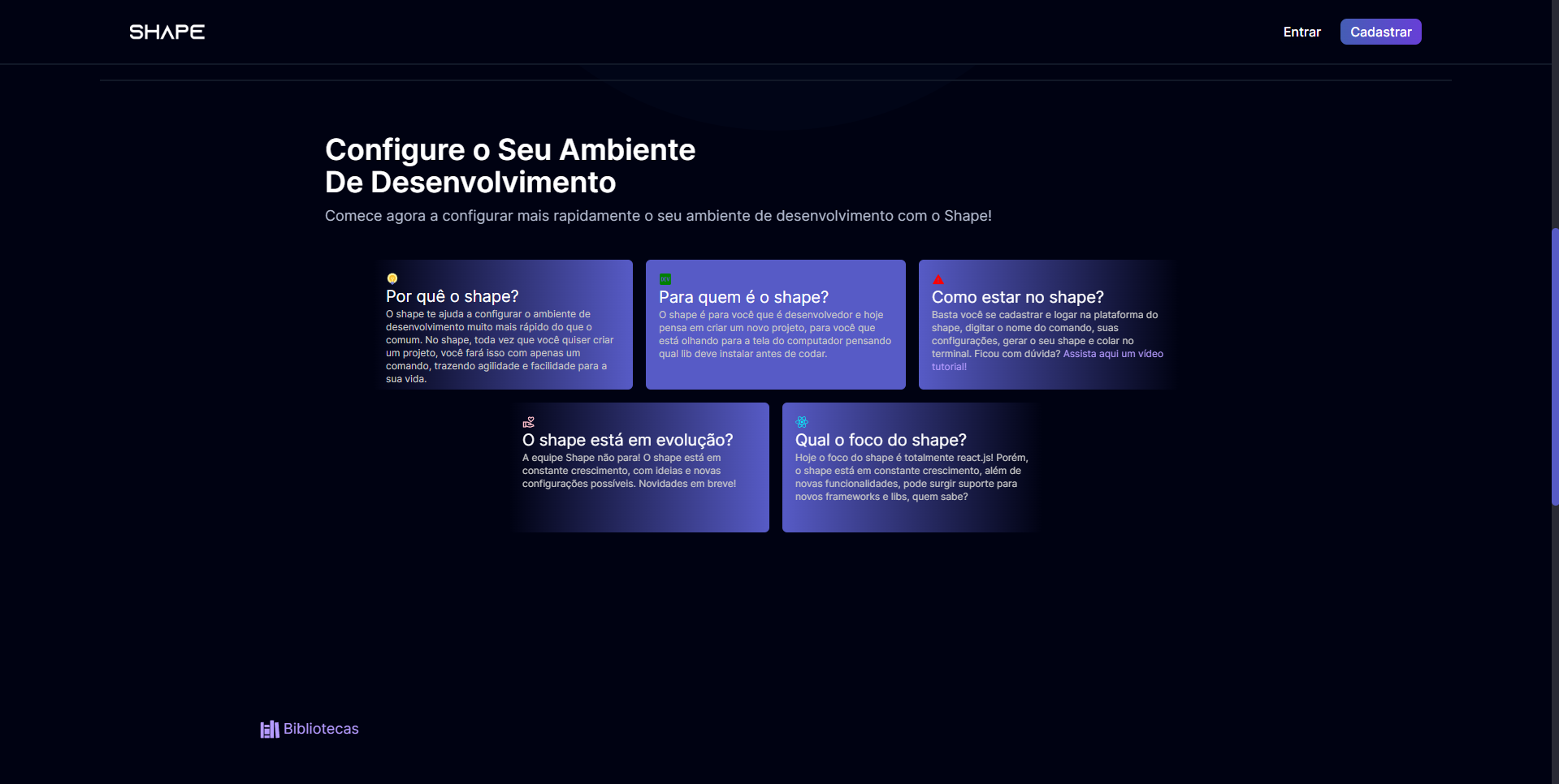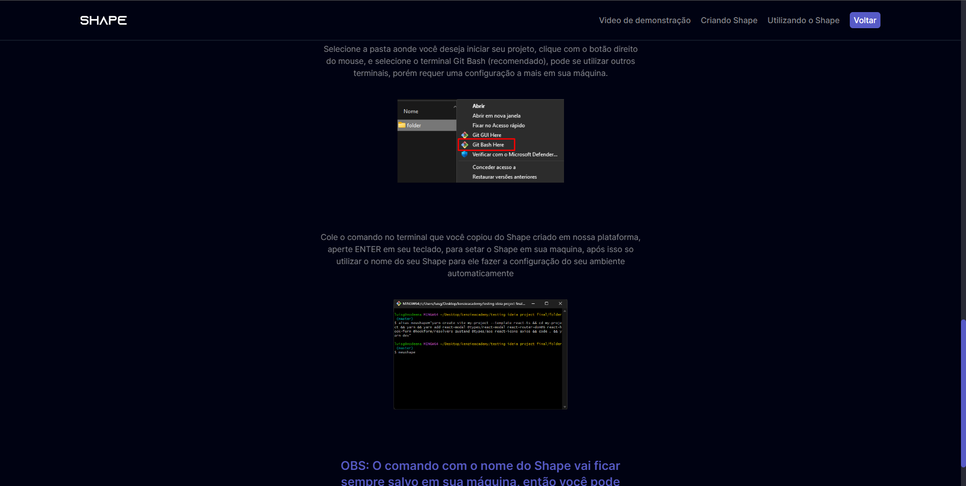 Proposto como entrega final do módulo React da Kenzie Academy Brasil, o projeto tem como base a ideia de ajudar devs mais novos a configurarem com mais velocidade o seu ambiente de desenvolvimento.Suas funcionalidades implementadas são: Cadastro, login, criar um shape, editar e deletar