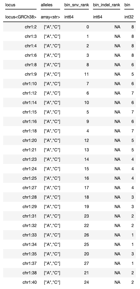 Can you show what the {bin_id}_rank is in the notebook, and not just the final bin assignment? I agree if the rank is 0 to (n_variants - 1) then the code as written is fine (basically the ranking already has 1 subtracted off it). It's just that I assumed hl.scan.count_where(bin_ht[f"_filter_{bin_id}"]) would be an actual count, which starts a 1 and not 0.