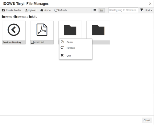 TinYii Filemanager is a Text Editor plugin that is used to manage assets and files using Yii 1.x framework. You can use TinYii Filemanager as a plugin for Text Editors or use it as a standalone filemanager.
