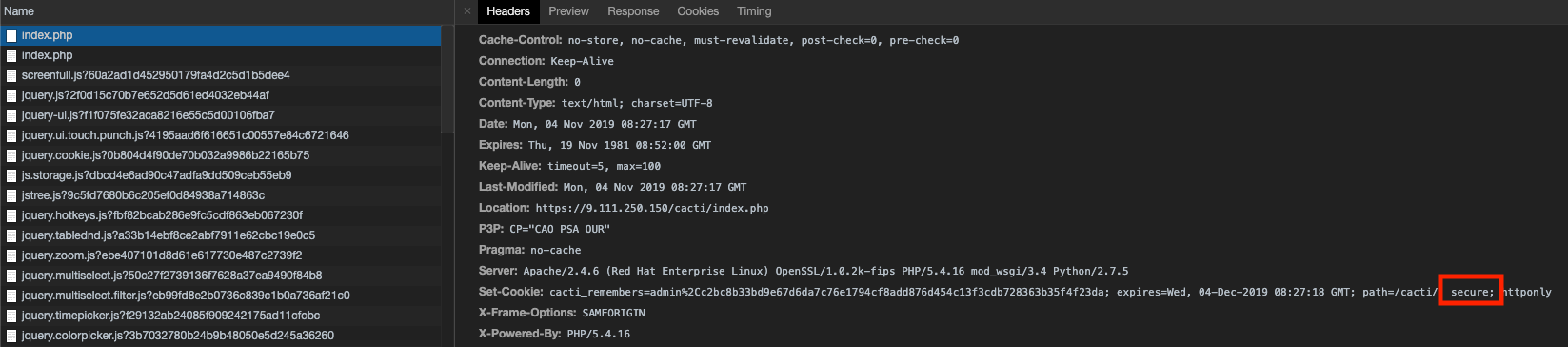 Need secure flag for Set-Cookie.