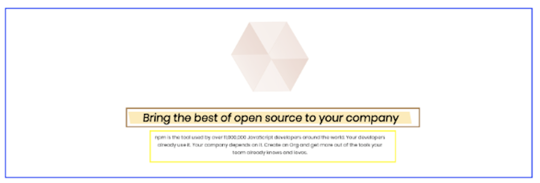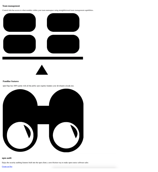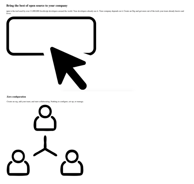 In this exercise, you will clone the landing page of the NPM website. NPM stands for a Node Package Manager, and you will be using it heavily throughout this course. The version you will be cloning is the one in that you see in the following image. If you want, you can visit the official page to pick up some of their styles, but this is not necessary; youโll see that the NPM page has been updated, but thatโs okay. You already have all the assets for this version in the images folder as well as the necessary text in the index.html.