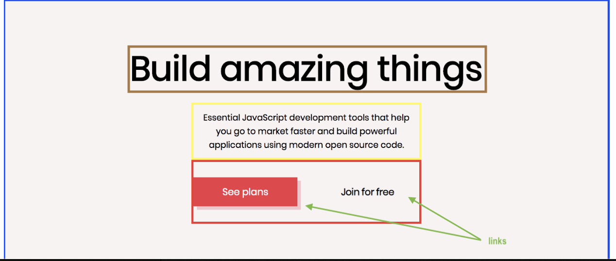 Take a look at the image with market HTML elements on it one more time, and you can see we have three sections below the header. Create section tags and give each of them ids so you can identify them quickly.