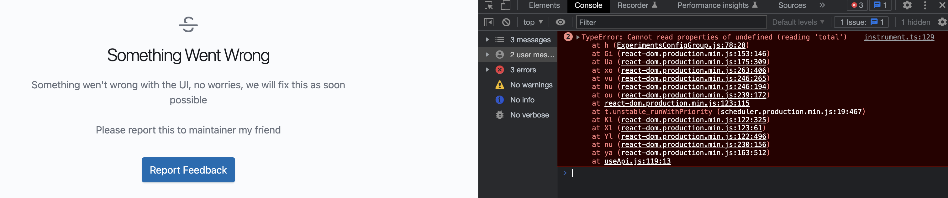 ExperimentEngineLoaderComponentloads the remote entry file first and then the dynamic config, if any, sequentially. If both succeed, the children of the component (which would attempt to load the specific remote components from the remote engine UI) will be returned. Intermittently, the config loader fails to be mounted with the following warning:As a result, the experiment engine's dynamic configs are not loaded which causes unexpected behaviours in the respective views - this can only be reset with a hard refresh. As an example, we see the below error with the turing-experiments engine, when viewing a router (the API host, which was supposed to have been retrieved from the dynamic configs is missing, and the dummy default value that's compiled into the UI build is taken).